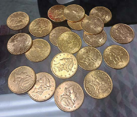 2-1/2 d. Indians and Liberty's, several $5 Indian Indians and Liberty's, $10 Indians